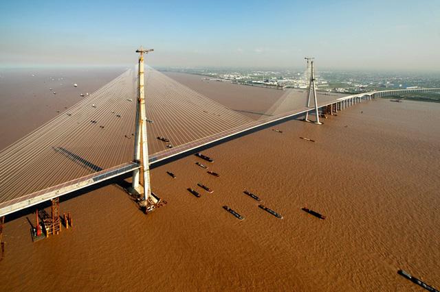杭州灣跨海大橋曾保持中國世界紀(jì)錄協(xié)會(huì)世界最長的跨海大橋世界紀(jì)錄,現(xiàn)為繼美國龐恰特雷恩湖橋和青島膠州灣大橋之后世界第三長的橋梁?;炷劣昧窟_(dá)到了245萬立方米,相當(dāng)于再造八個(gè)國家大劇院,它的用鋼量達(dá)到了80萬噸,相當(dāng)于再造七個(gè)鳥巢。