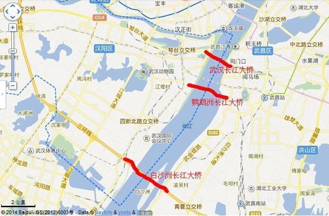 兩端:北接漢陽的鸚鵡大道,南連武昌的復(fù)興路